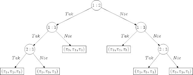 M:= ∅; R:= ∅; W:= ∅; while |M|+|R|+|W| <n do zwiększ o jeden sumę |M|+|R|+|W| zachowując niezmiennik alpha(M,R,W,x) w czasie i dodatkowej pamięci O(1)