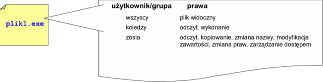 % getfacl plik-testowy # file: plik-testowy # owner: janek # group: bsk user::rw- group::r-- other::r--