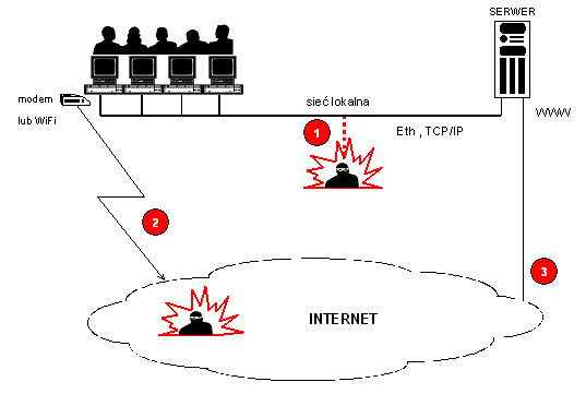 Luki bezpieczeństwa w usłudze WWW dotyczą wielu komponentów systemu, w szczególności klientów (przeglądarek), serwerów czy środowiska wykonania (systemu operacyjnego).