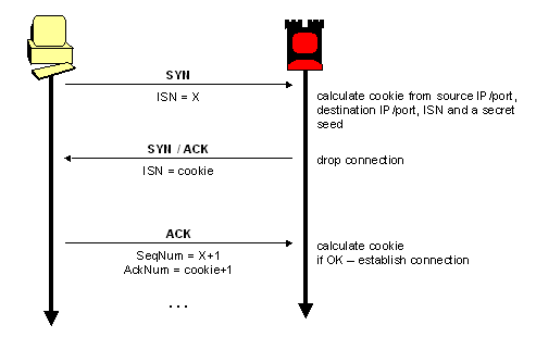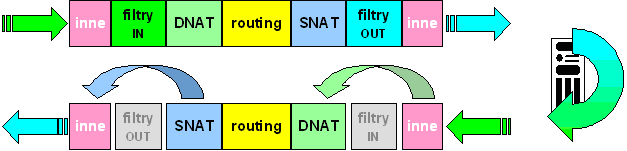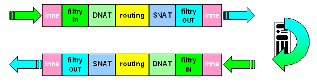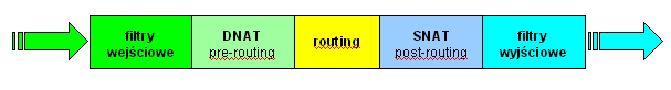 Łańcuch funkcji realizowanych przez zapory sieciowe wyglądać może następująco: