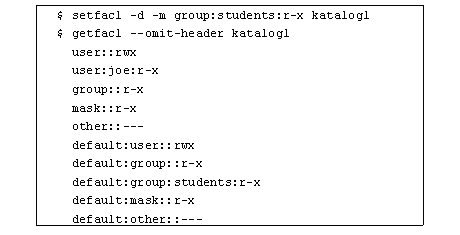 % getfacl plik-testowy # file: plik-testowy # owner: janek # group: bsk user::rw- user:ala:rwx group::r-- mask::rwxman setuid other::r--