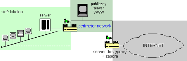 Konfiguracja która przyjęła się pod nazwą Strefa Zdemilitaryzowana (DMZ = Demilitarized Zone) to wydzielona podsieć zawierająca komponenty świadomie wyjęte spod kontroli obejmującej całą resztę sieci wewnętrznej, takie jak np.: