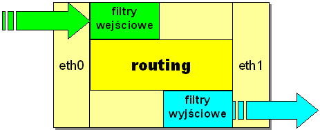 Schemat wewnętrznej kompozycji urządzenia filtrującego jest przedstawiony na rysunku 4. Możliwe jest utrzymywanie oddzielnych list filtracji dla ruchu wchodzącego i wychodzącego z zapory sieciowej.