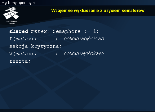 Po nadaniu początkowej wartości zmiennej semaforowej można na niej wykonywać tylko dwa rodzaje operacji: