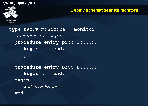Różnica w stosunku do mechanizmów standardu POSIX jest zatem taka, że zajęcie i zwolnienie zamaka wykonywane jest niejawnie. Sam zamek w związku z tym również nie jest jawnie deklarowany. W ten sposób można się ustrzec błędów związanych z pominięciem tego typu operacji synchronizującej. Należy jedynie zadbać o poprawność definicji struktury danych, a w zakresie tym można liczyć na wsparcie ze strony narzędzi programistycznych, np. kompilatora.