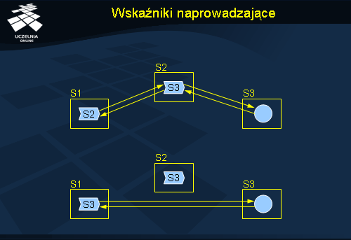 Innym prostym rozwiązaniem problemu lokalizacji są wskaźniki naprowadzające (ang. forward pointers ). Mechanizm ten polega na pozostawianiu w starej lokalizacji wskaźnika do nowej lokalizacji. Poszukiwanie jednostki sprowadza się wtedy do przejścia całego łańcucha wskaźników, aż dotrze się do właściwej jednostki. Rozwiązanie to jest bardzo proste koncepcyjnie i realizacyjnie, ale ma kilka wad. Łańcuch wskaźników może się bardzo wydłużyć, co spowoduje nieakceptowalne wydłużenie czasu oczekiwania na odpowiedź. Inna wada to konieczność przechowywania wskaźników w poszczególnych węzłach przez cały czas funkcjonowania systemu. W końcu rozwiązanie to może, w przypadku utraty któregoś ze wskaźników, doprowadzić do nieosiągalności jednostki.
