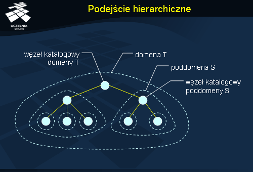 Poszukiwanie jednostek w modelu hierarchicznym wykorzystuje własność lokalności . Poszukiwanie obejmuje swoim zasięgiem coraz bardziej ogólne domeny, w skrajnym przypadku docierając do węzła katalogowego korzenia, który ma zarejestrowane wszystkie jednostki.