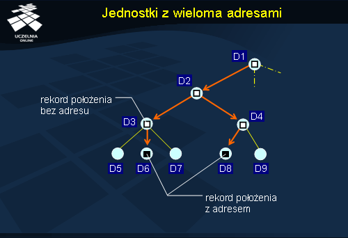 Dodatkową optymalizacją możliwą do przeprowadzenia jest wymuszenie przechowywania docelowego adresu jednostki w węźle katalogowym domeny D1. Normalnie znajdowałby się tam jedynie wskaźnik do domeny D2 lub D3, w zależności od tego gdzie aktualnie znajduje się jednostka. Taka optymalizacja dodatkowo skraca czas pozyskania adresu.