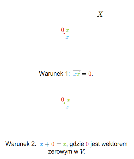 Jeśli \(x=y\), to dla każdego punktu \(z\in X\) zachodzi równość \(\overrightarrow {zx} =\overrightarrow {zy}\).
