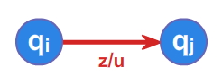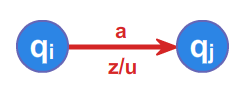 Prawo \(\displaystyle zq_{i}a\longrightarrow uq_{j}\) będziemy reprezentować grafem: