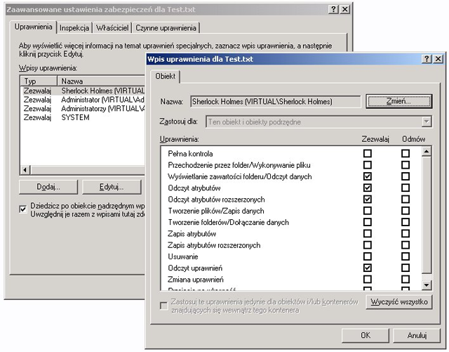 Poniższe obrazki ilustrują działanie ACL w systemie Windows XP.